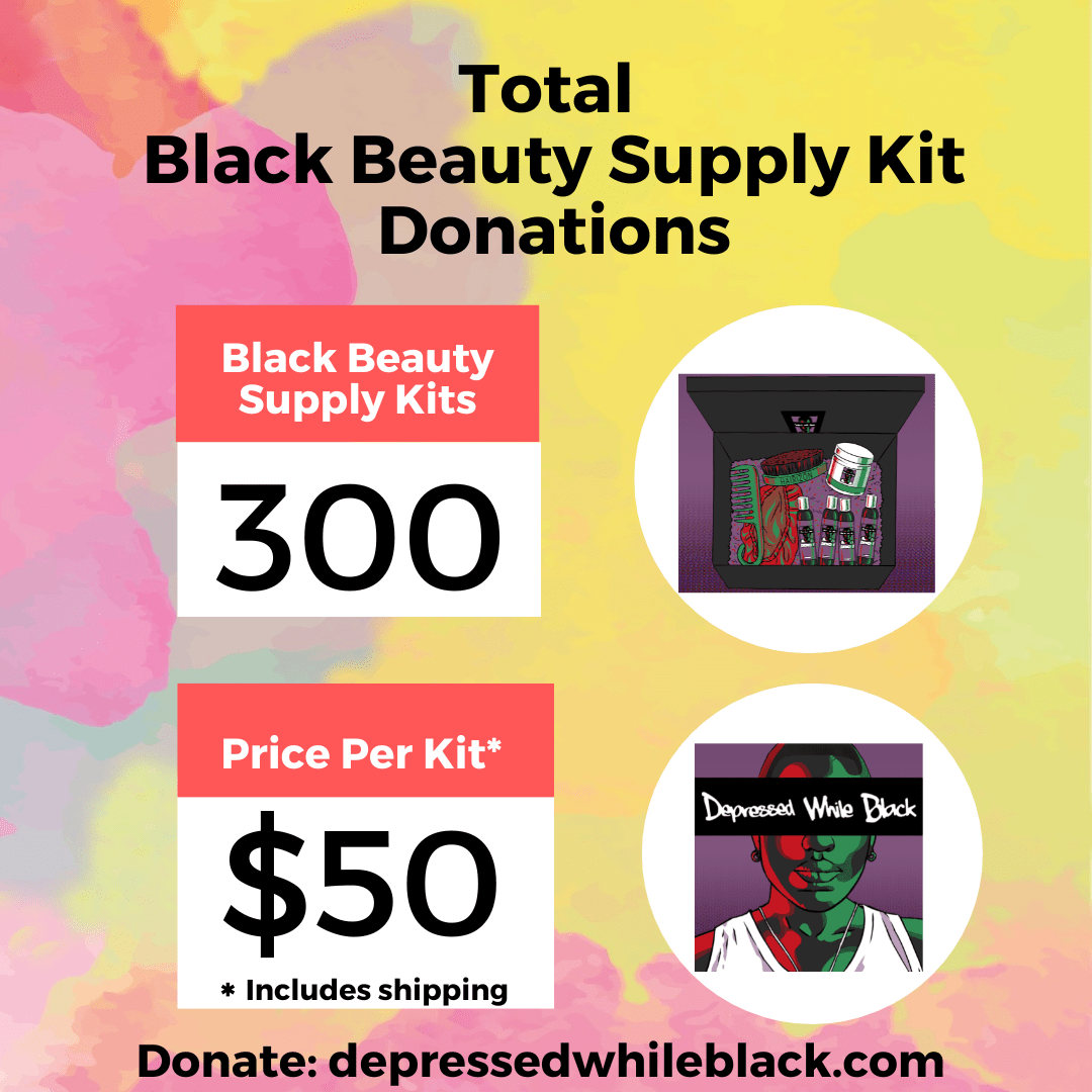 Depressed While Black envisions a world where people of African descent heal from depression through Black-affirming mental health support and advocacy. We are a 501(c)3 nonprofit that donated over 600 Black Beauty Supply Kits to 9 psychiatric facilities across the East Coast. Since 2020, we've given Black-affirming products to tell psychiatric patients they are worthy of care.
