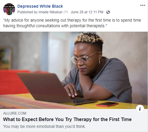 In partnership with Darkness Rising, a mental health awareness nonprofit, Help Me Find A Therapist is a free program that directly assists community members in the search for Black therapists. Users fill out a digital form to make customized requests for culturally competent therapy and can expect to receive contact information for up to 3 Black therapists which meet their criteria, tips for their first therapy consultation, and more.